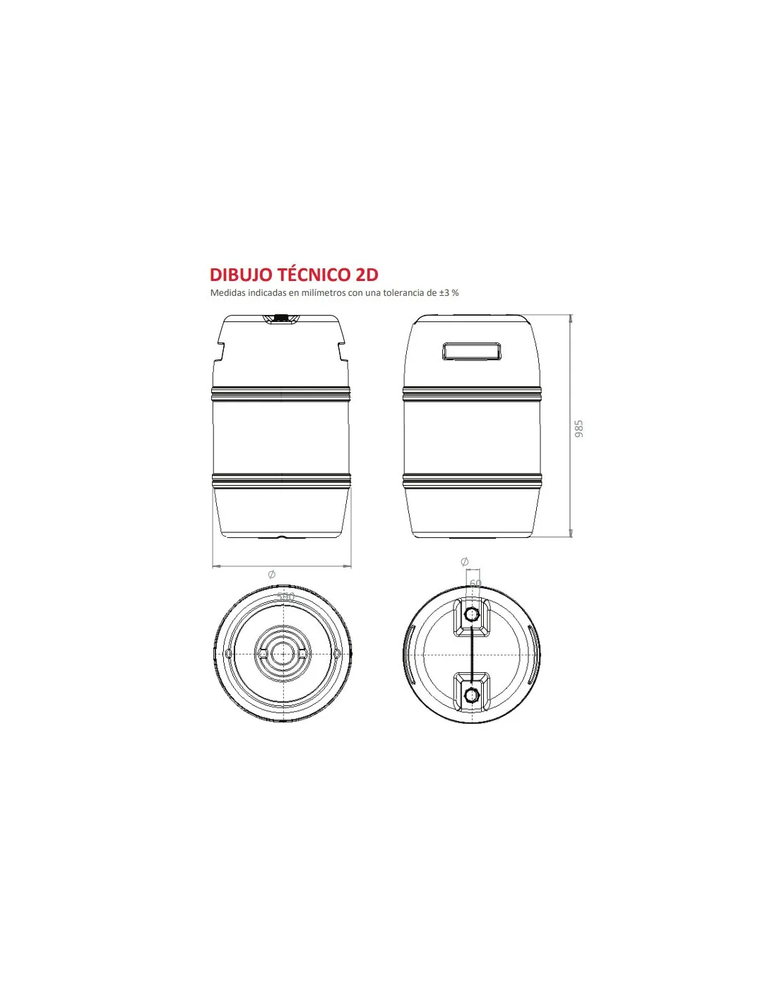 - Sistema de cierre: Dos tapas irrellenables roscadas de Ø 60 mm con sellante PEAD.