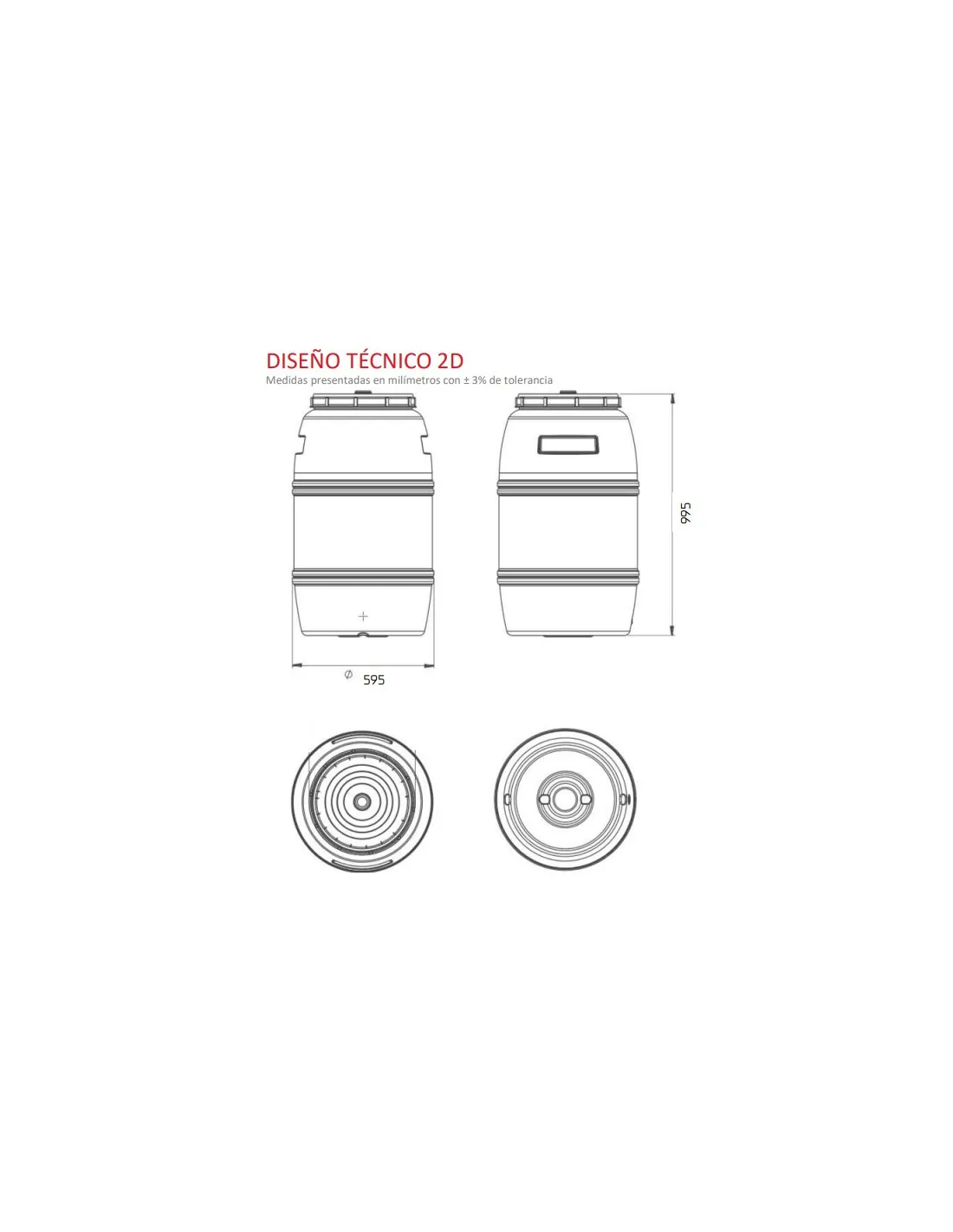 Bidón para uso alimentario. Con volumen de 230 litros, boca ancha y apertura total mediante tapa roscada. Está especialmente diseñado para el almacenamiento y transporte de productos líquidos, viscosos y secos. El bidón se adapta, perfectamente a su carga en contenedores, por lo que resulta idóneo para la exportación.