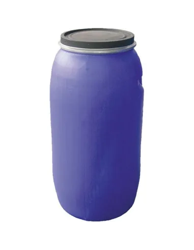 Bidón para uso alimentario. Con volumen de 125 litros, boca ancha y apertura total mediante fleje. Está especialmente diseñado para el almacenamiento y transporte de productos líquidos, viscosos y secos. El bidón se adapta, perfectamente a su carga en contenedores, por lo que resulta idóneo para le exportación.