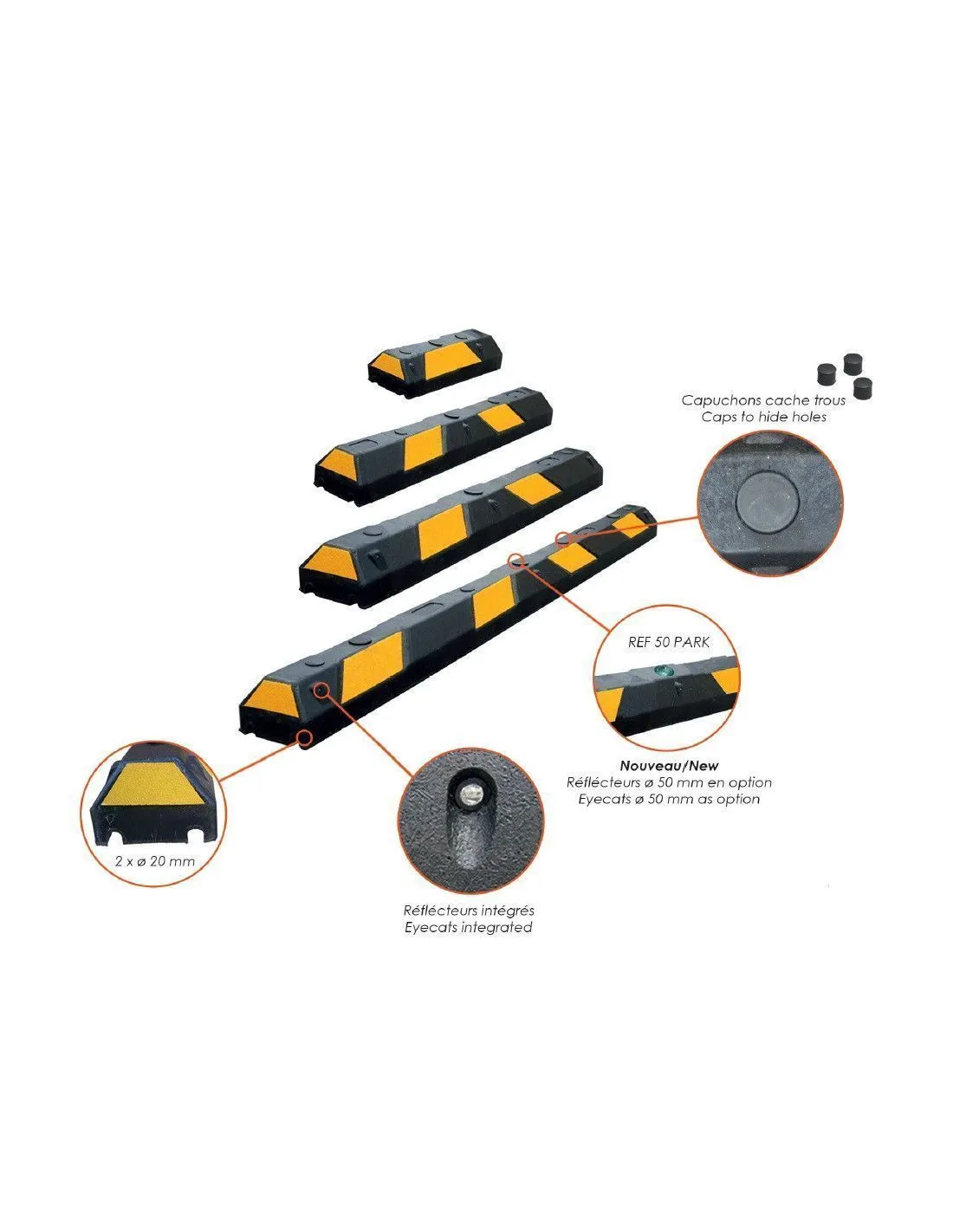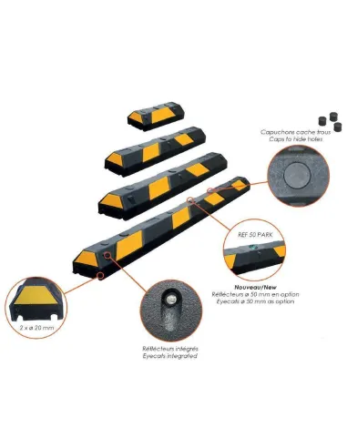 Tope de protección de caucho de fijación al asfalto de 500x150x100 mm.