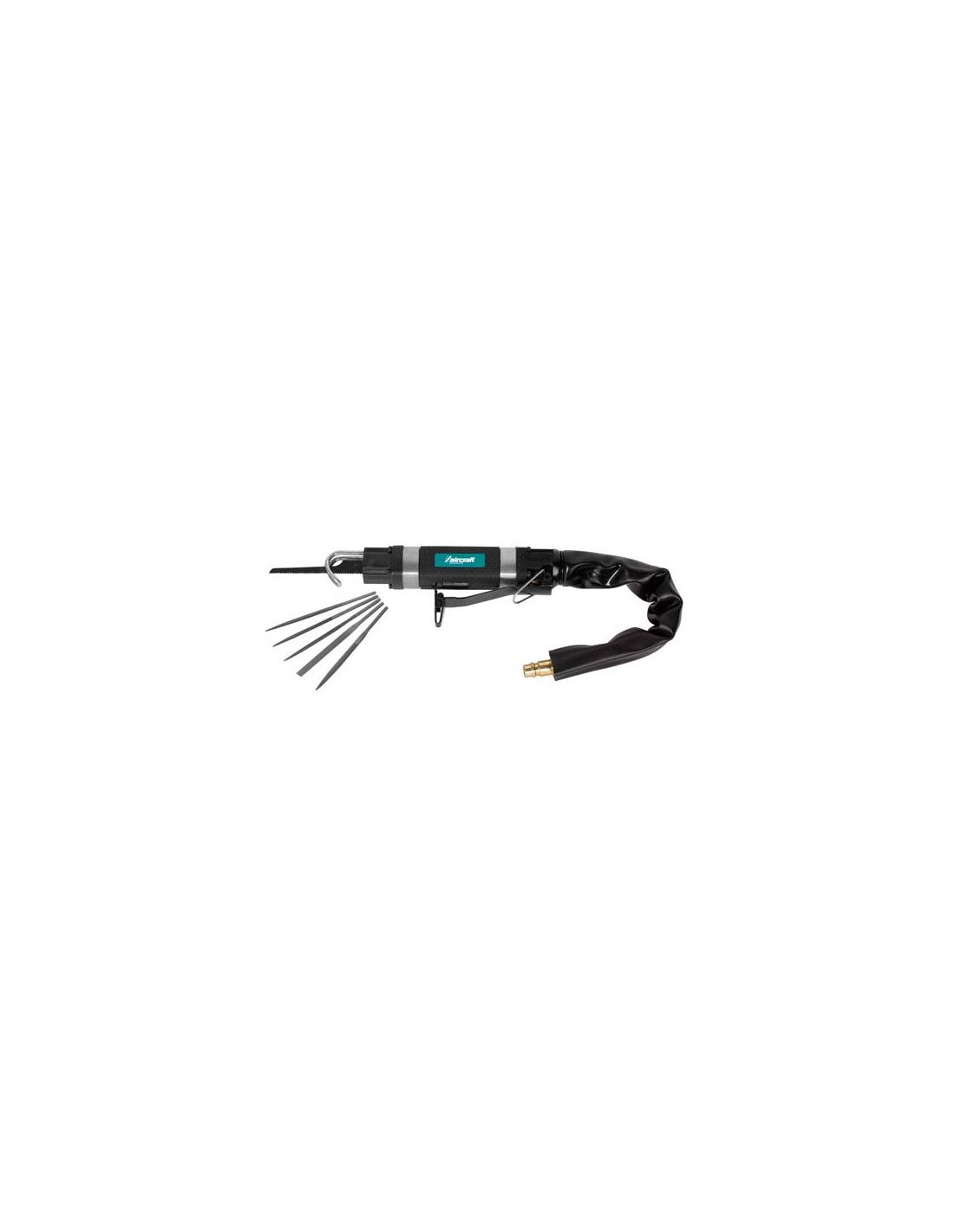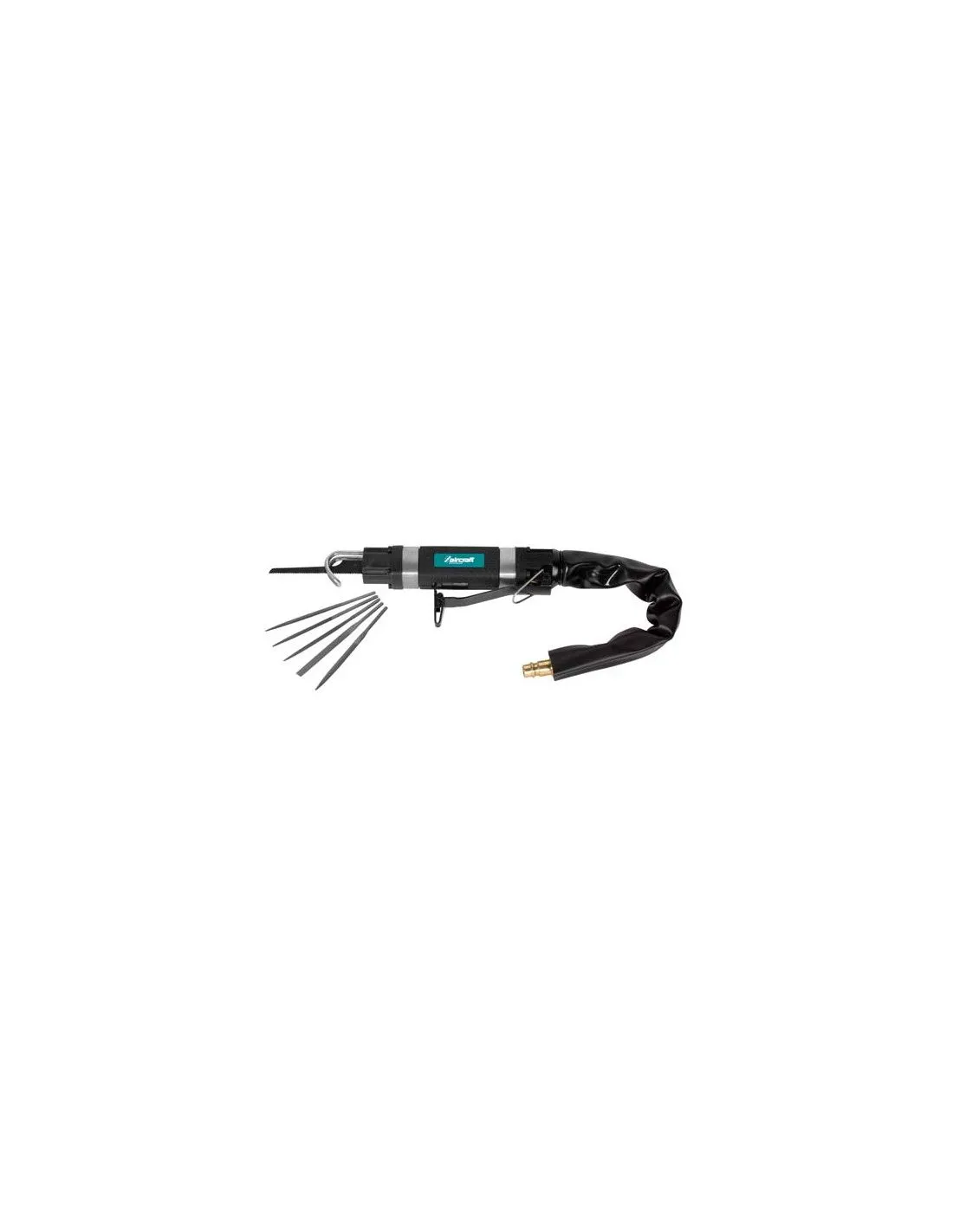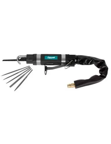 Sierra caladora universal. Ideal para talleres de automoción, talleres de reparación, cerrajerías, trabajos en metal, etc. Ligera y fácil de manejar. Cuerpo protegido por guía de seguridad. Protección contra el frío debido a la empuñadura de goma. Conductos de aire en la parte posterior a través del mango. Muy bajo nivel de ruido, incluye funda de salida silenciosa.