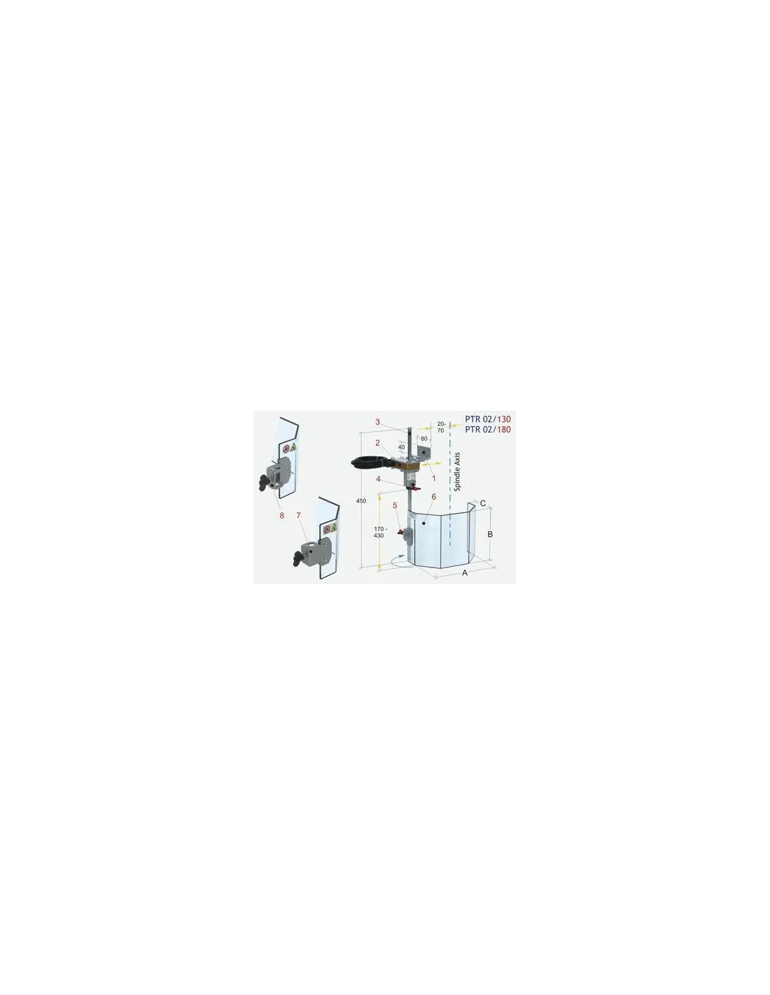 Dispositivo TP Tecnopiu PTR02/180 frontal directo para proteger las partes móviles del husillo y de la proyección de virutas y líquido lubricante-refrigerante