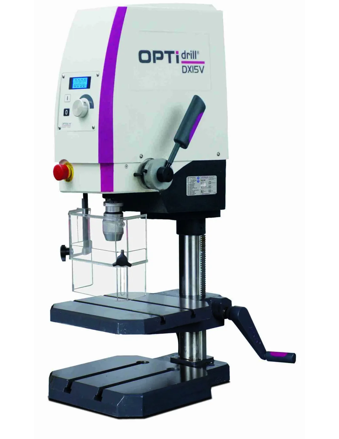Taladro de Sobremesa Optimum DX15V con un potente motor sin escobillas OPTIMUM. Velocidad controlada electrónicamente.