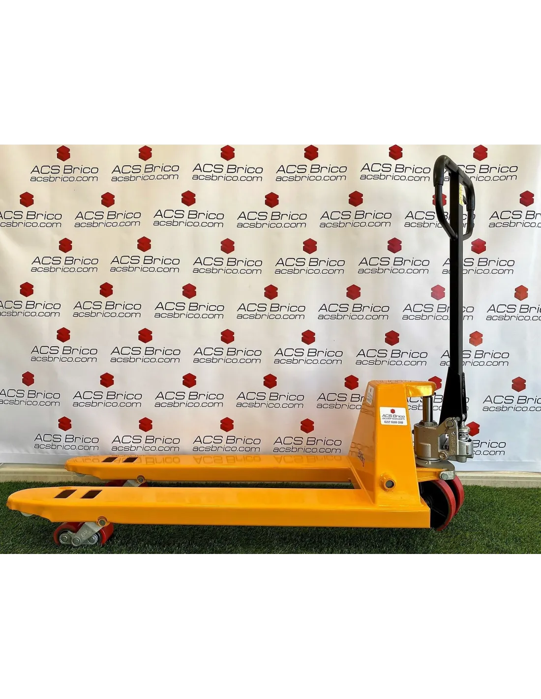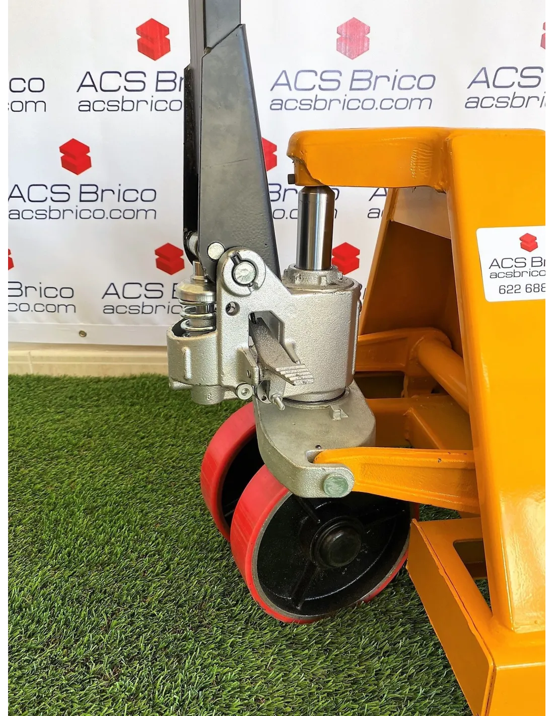 Diseñada para facilitar los trabajos de logística y almacén. Eleva y transporta cargas de hasta 2500 kg de peso, sin poner en riesgo tu integridad física. Esta transpaleta está provista con unas uñas de 1150 mm, con una bomba hidráulica de alta calidad, con dos rueda directrices (200 mm) y dos juegos de ruedas delanteras dobles fabricadas con policarbonato revestidas de caucho. Además, está diseñada con un chasis de acero que garantiza una mayor vida útil y una gran robustez.