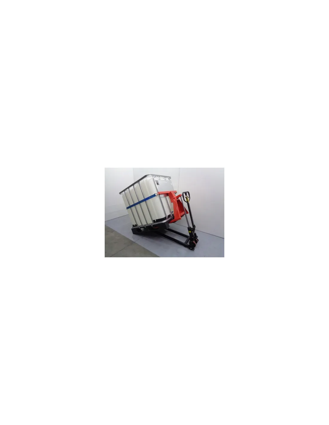 Transpaleta inclinadora a 30º. Idónea para el vaciado de depósitos de líquidos. Carga 1.000 kilos.