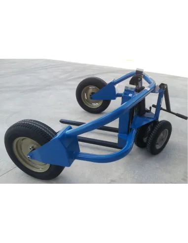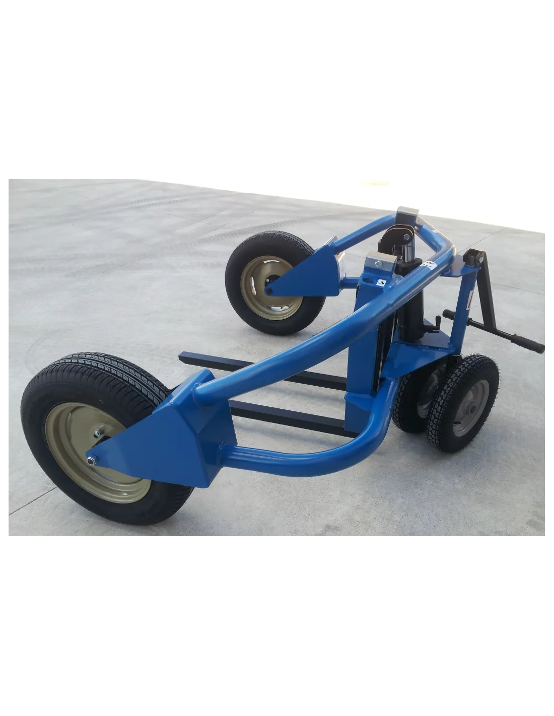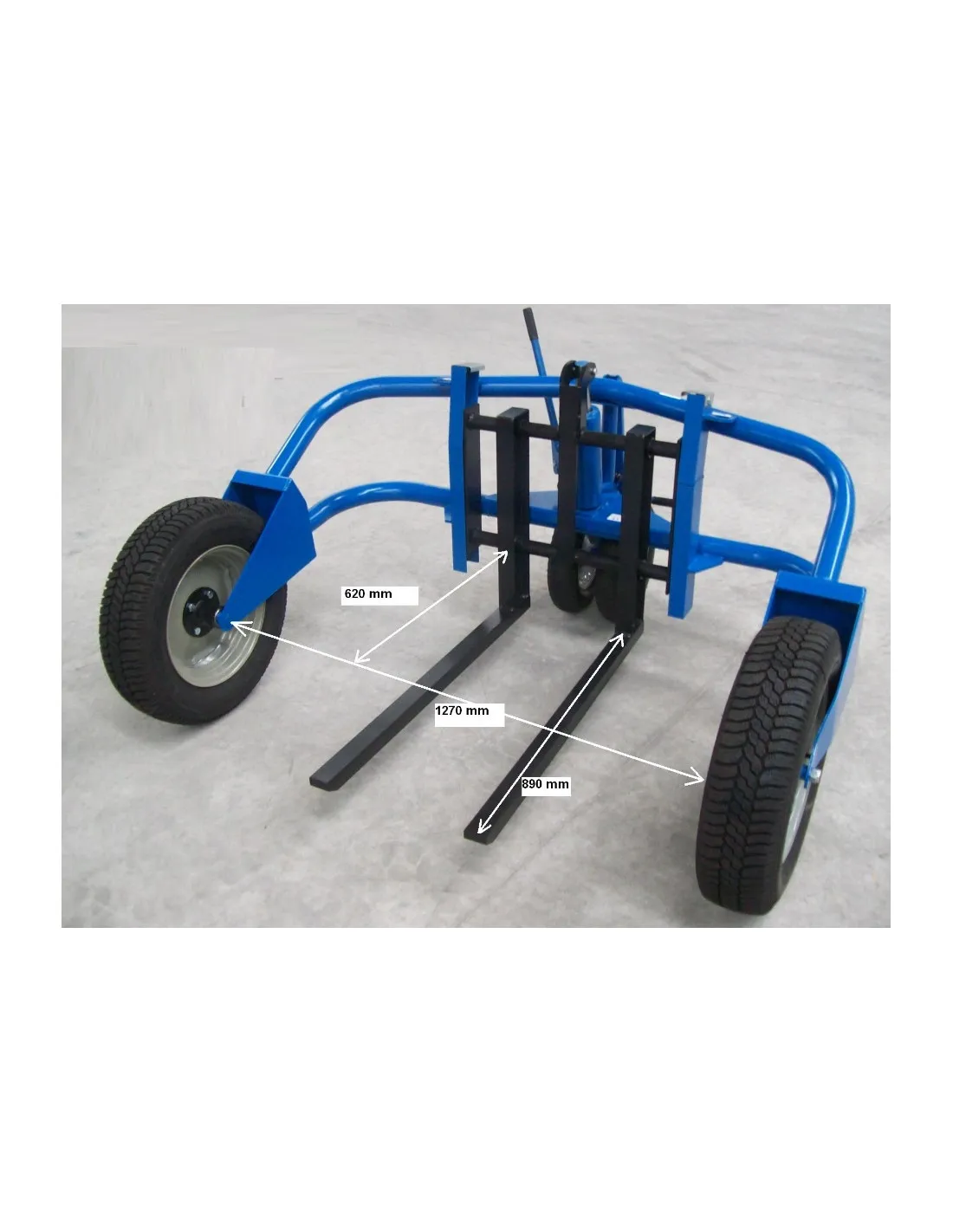 Transpaleta con ruedas neumáticas ideal para obra y terrenos difíciles.