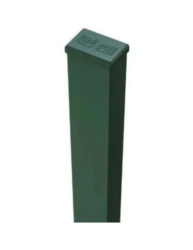 Poste Hércules de forma rectangular fabricado en acero y PVC con acabado pintado de color verde, indicado para formar vallas y cercados en el jardín o espacio exterior. Cuenta con estaca rectangular.