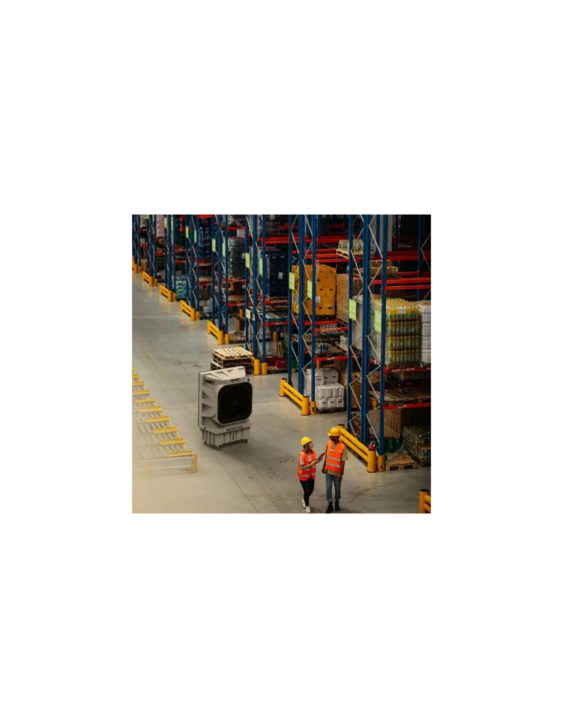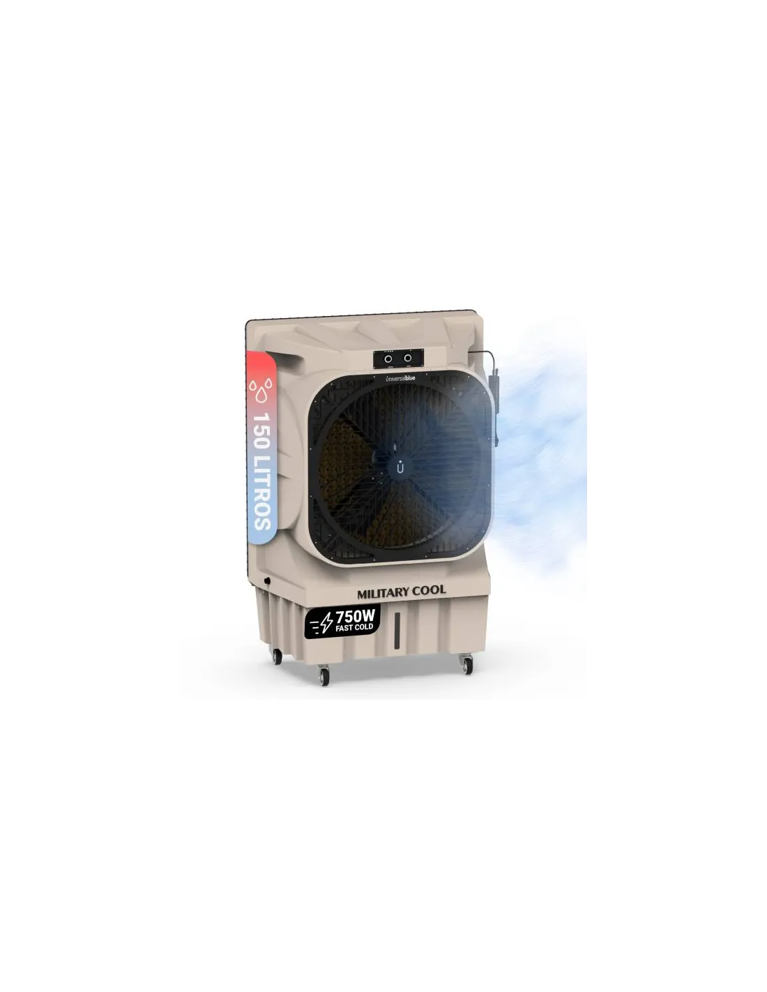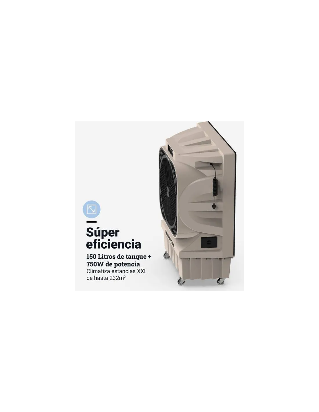 Climatizador evaporativo con 750W de potencia y un flujo de aire de hasta 20000 m³/h.