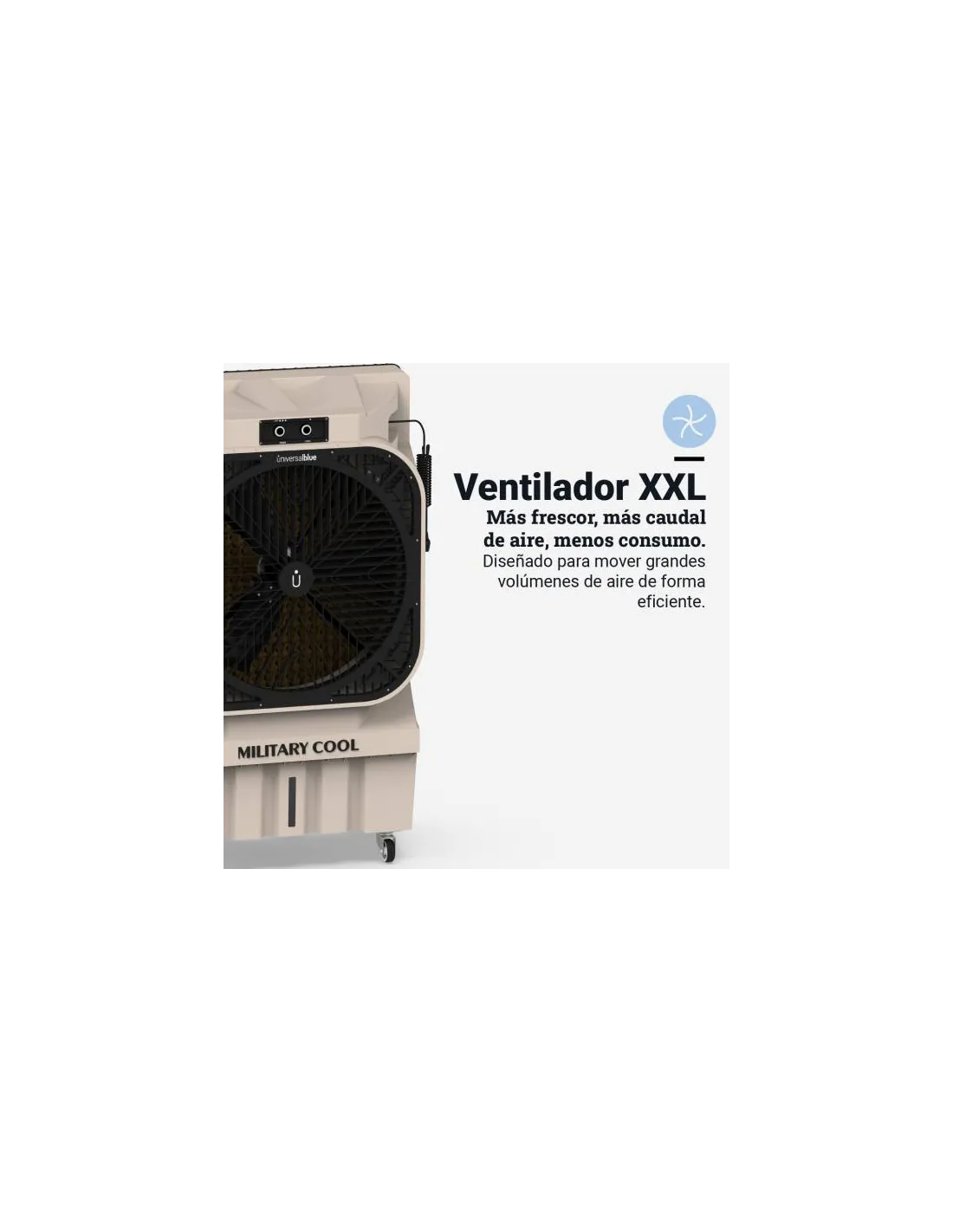 A pesar de su gran potencia, mantiene un nivel de ruido bajo (60 - 80 dB), permitiendo un ambiente fresco sin interrupciones. Además, su consumo de 750W es más eficiente que un aire acondicionado convencional.